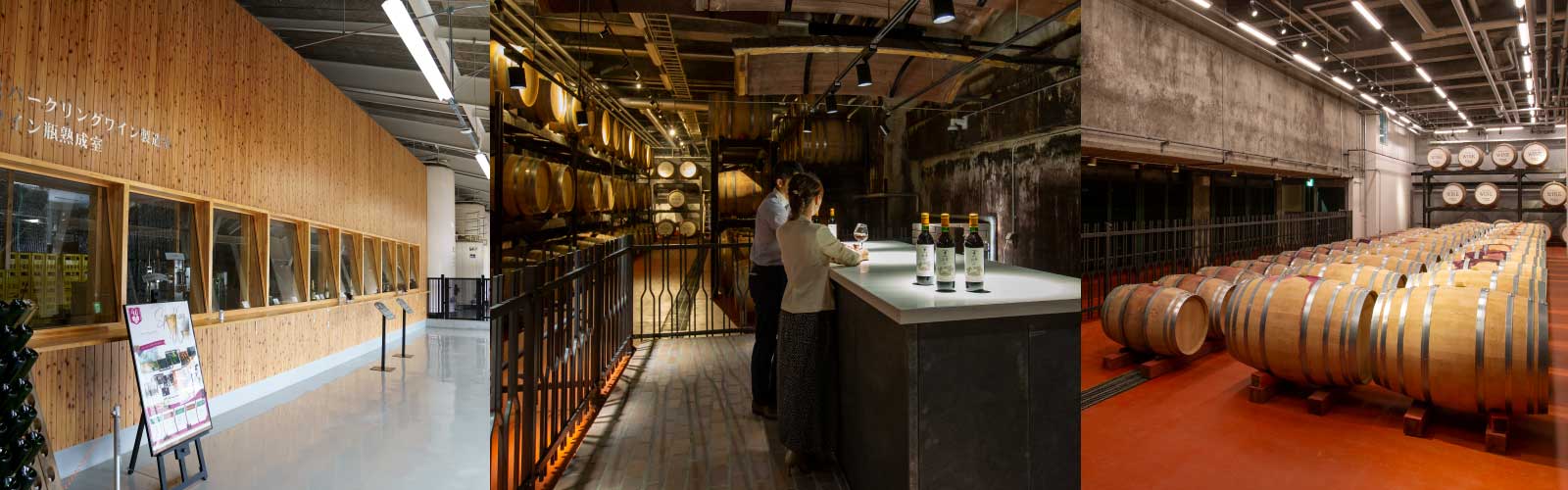 樽熟成、ビン熟成、そして既に出荷を終えた年代物のワインの数々をご覧いただけます。温度、湿度、ビン熟成中にコルクに付着した自然のカビなどを肌で体感ください。また、新たに8,000ℓの大樽を割いた屋根をしつらえたバーを併設、独創性のある重厚な空間を演出します。